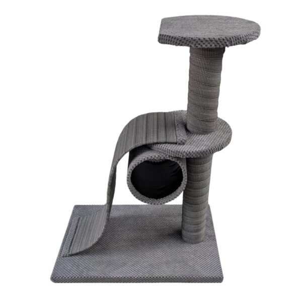 Powierzchnia do drapania została wykonana z trwałego sizalu, który skutecznie pomaga kotu ścierać pazury i chroni meble przed zniszczeniem. Stabilna konstrukcja gwarantuje bezpieczeństwo użytkowania, a miękkie wykończenia zwiększają komfort odpoczynku. Drapak wspiera naturalne instynkty kota, redukuje stres i sprzyja codziennej aktywności fizycznej.
