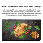 Królik i dzikie zioła 41% (w tym suszone mięso królika 32%, zioła 9% – siemię lniane, ostropest, dzika róża, cykoria, pokrzywa, szpinak), ziemniaki 20%, skrobia ziemniaczana, olej z łososia 10%, wysłodki buraczane, suszone drożdże piwne, jabłko 4%, minerały i witaminy, pietruszka, MOS, glukozamina, chondroityna.