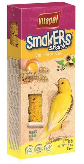 Smakers będący zarówno smakołykiem, jak i pożywnym dodatkiem do codziennej diety kanarków. Białko z jaj zapewnia wszystkie niezbędne dla prawidłowego funkcjonowania organizmu aminokwasy. Niezbędny dodatek w żywieniu ptaków przed i w czasie lęgów oraz w okresie pierzenia. Obecność nasion murzynka przeciwdziała zjawisku zatrzymania jaj. Stanowi również idealne uzupełnienie diety ptaków w czasie spoczynku.